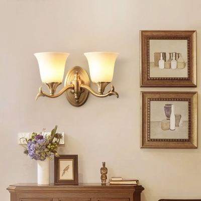 European Luxury Brass Glass Cup Shape 1/2 Light Wall Sconce Lamp