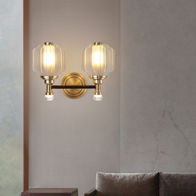 Modern Chinese Acrylic Brass Lantern 1/2 Light Wall Sconce Lamp
