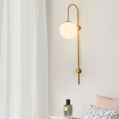 Nordic Minimalist Glass Round Ball Long Pole 1-Light Wall Sconce Lamp