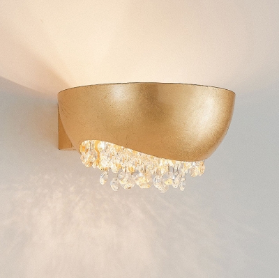 Modern Luxury Round Pot Iron Crystal Gold 2-Light Wall Sconce Lamp