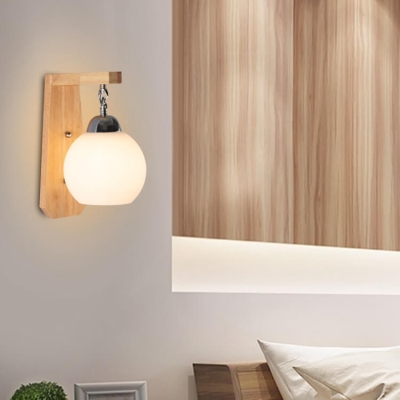 Japanese Simple Glass Round Shade Wood Arm 1-Light Wall Sconce Lamp
