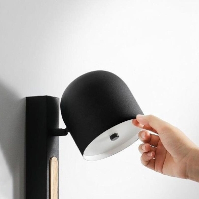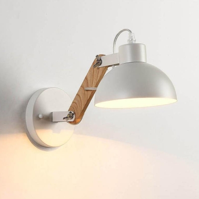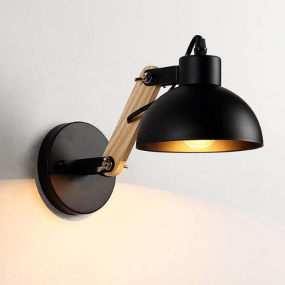 Industrial Simple Dome Retractable Wood Arm 1-Light Wall Sconce Lamp