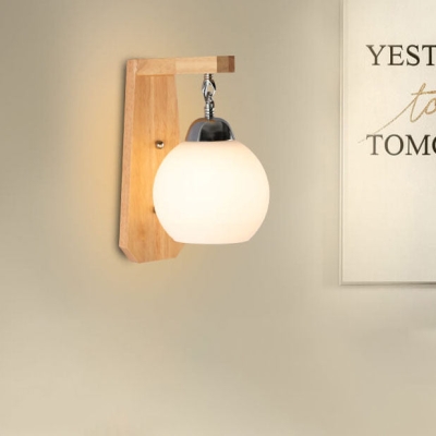 Nordic Minimalist Solid Wood Glass 1-Light Wall Sconce Lamp