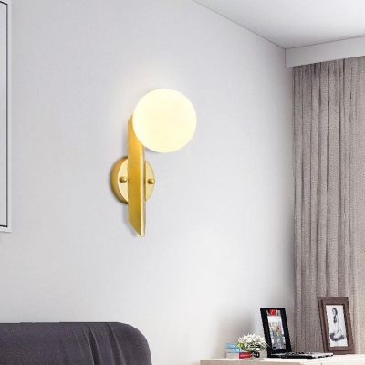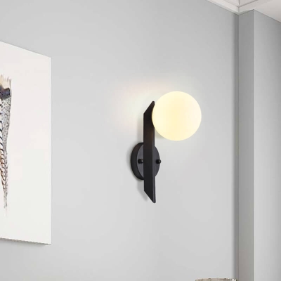 Modern Minimalist Round Ball Glass Metal Straight Arm 1-Light Wall Sconce Lamp