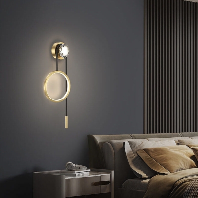 Light Luxury Brass Crystal Circle Design LED Wall Sconce Lamp