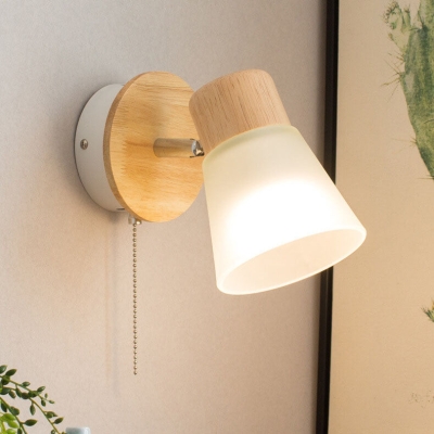 Nordic Simple Glass Cone Wood Zipper 1-Light Wall Sconce Lamp