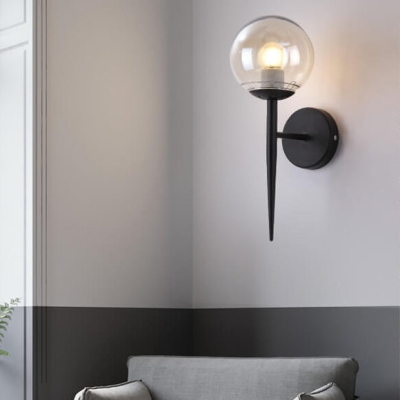 Modern Minimalist Glass Round Ball Shade Long Pole 1-Light Wall Sconce Lamp