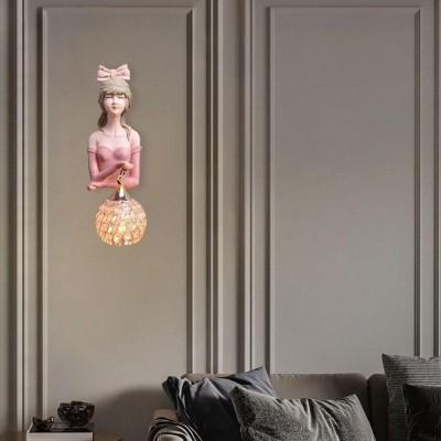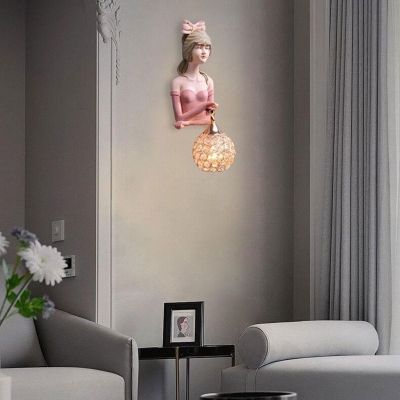 Creative Girl Painted Resin Glass Kids 1-Light Wall Sconce Lamp