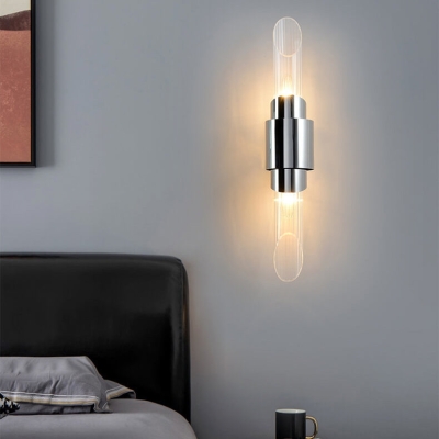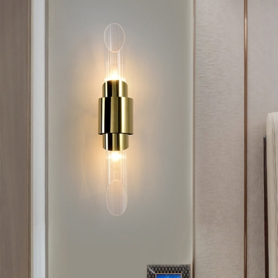 Modern Luxury Stainless Steel Glass Column 2-Light Wall Sconce Lamp