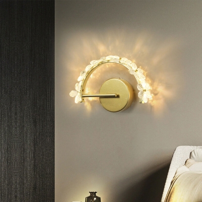 Nordic Gold Crystal Flower Half Circle LED Wall Sconce Lamp