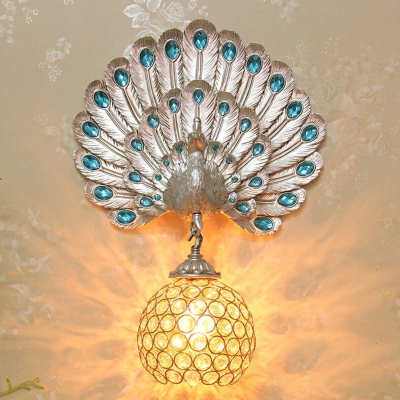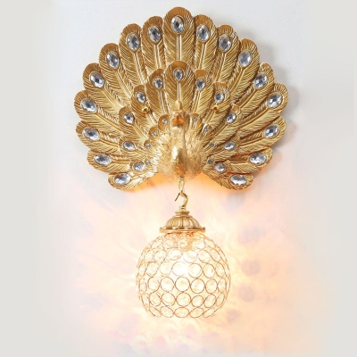 European Vintage Crystal Peacock Shape 1-Light Wall Sconce Lamp