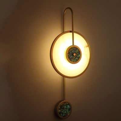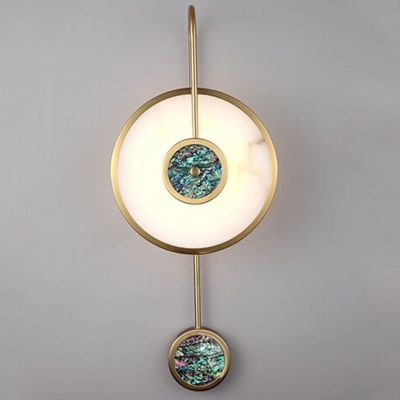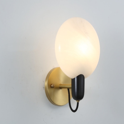 Nordic Light Luxury Brass Faux Marble Disc 1-Light Wall Sconce Lamp
