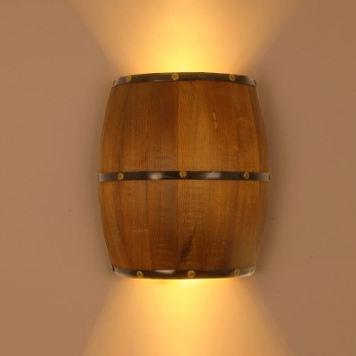 Industrial Vintage Half Barrel Wood 2-Light Wall Sconce Lamp