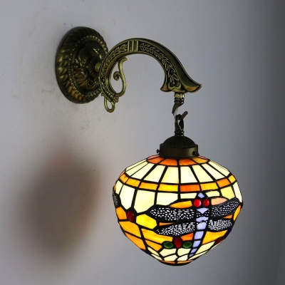 Vintage Tiffany Globe Stained Glass 1-Light Wall Sconce Lamp