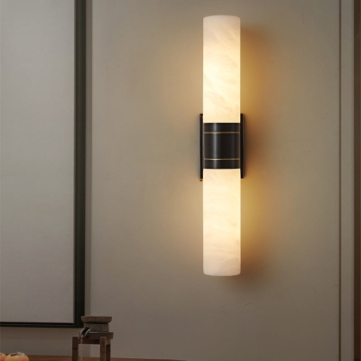 Traditionelle chinesische Vollkupfer-Marmor-Zylinderschirm-Wandleuchte mit 2 Leuchten für Wohnzimmer
