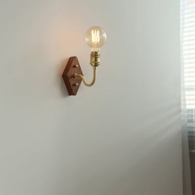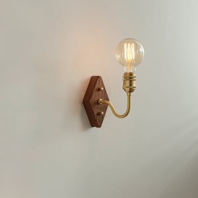Zeitgenössische Retro-Wandleuchte mit gebogenem Stab aus Holz und Messing im Retro-Stil mit 1 Licht für Schlafzimmer