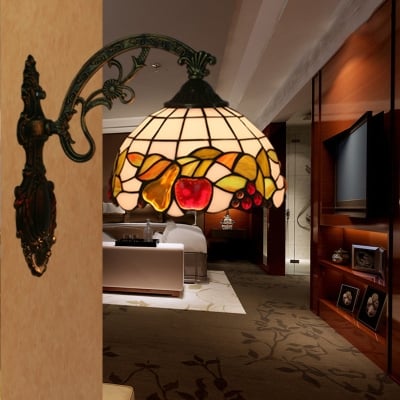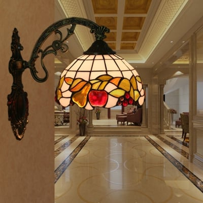 Traditionelle Tiffany Dome Petal Hardware Buntglas-Wandleuchte mit 1 Licht für das Wohnzimmer