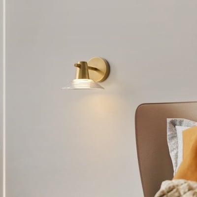 Zeitgenössische nordische konische LED-Wandleuchte aus Vollkupfer-Acryl für das Wohnzimmer