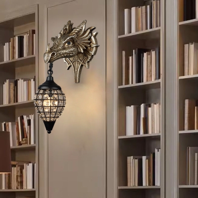 Traditionelle europäische Drachenkristall-Eisenharz-Wandleuchte mit 1 Licht für das Wohnzimmer