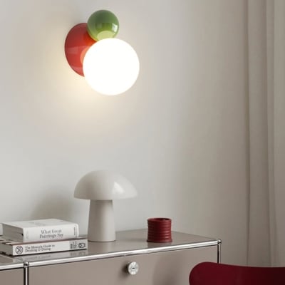 Moderne minimalistische runde Kugel-Eisen-Kunststoff-Wandleuchte mit 1 Licht für Schlafzimmer