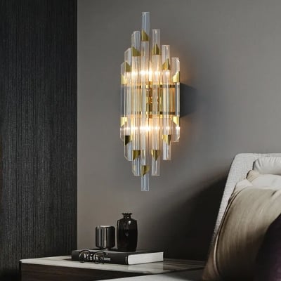 Zeitgenössische Luxus-Streifen-Hardware-Kristall-Wandleuchte mit 2/4-Lichtern für das Wohnzimmer