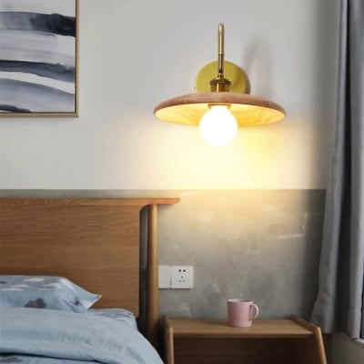 Eisen-Lampenschirm, 1-flammige Wandleuchte mit Holzarm und einer Glocke