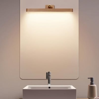 Moderne, schlichte, lange Bar-Touch-LED-Spiegel-Frontleuchte aus Holz mit USB-Wandleuchte