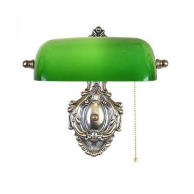 1-flammige Retro-Wandleuchte mit kupfergrünem Glasschirm