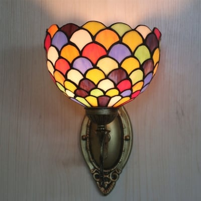 Tiffany-Wandleuchte mit 1 Lichtpunkt und gebeiztem Punktglas