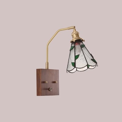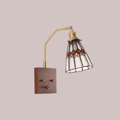 Zeitgenössische Retro-Wandleuchte mit quadratischem Kegel, komplett aus Kupfer, Holz und Glas, 1-flammig, für Wohnzimmer