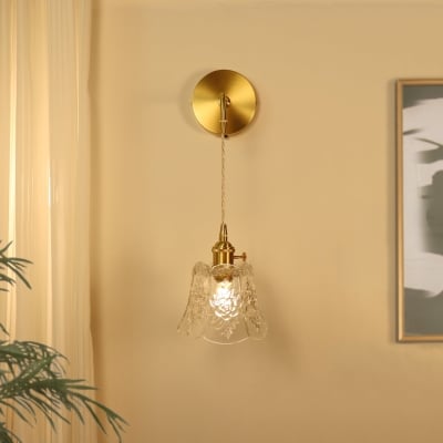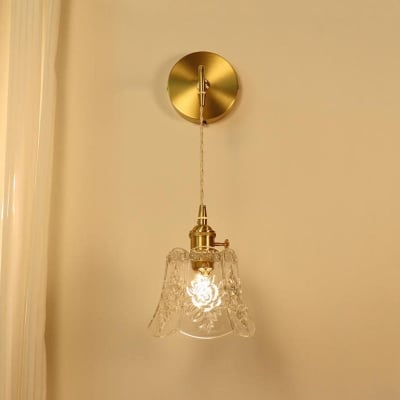 Traditionelle französische 1-flammige Wandleuchte aus geschnitztem Glas aus Messing für Schlafzimmer