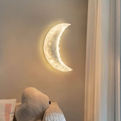 Zeitgenössische kreative Mondschnitzerei-LED-Wandleuchte aus Kunstharz für das Wohnzimmer