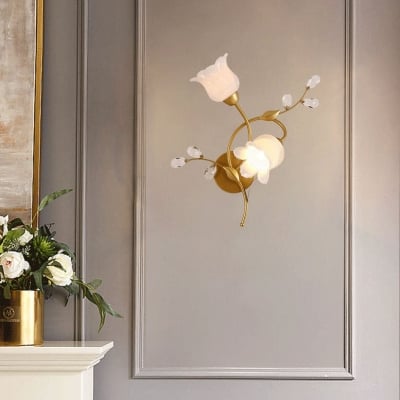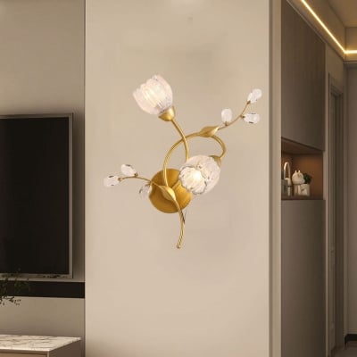 Moderne Art-Deco-Blumen-Hardware aus Glas und Kristall, 2-flammige Wandleuchte für Wohnzimmer