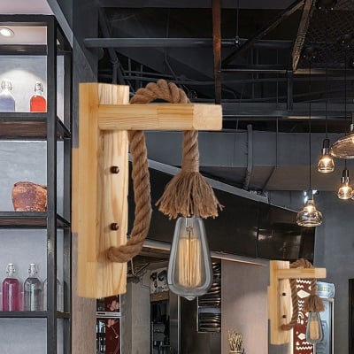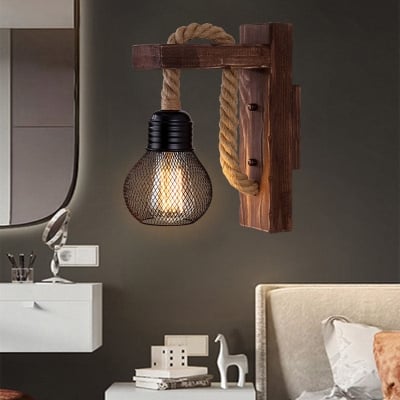 Traditionelle Vintage Holzbalken-Eisenkäfig-Wandleuchte mit 1 Licht für das Wohnzimmer