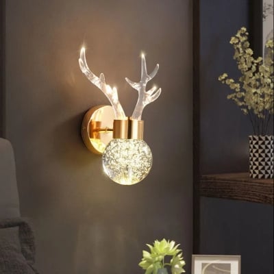Zeitgenössische kreative Acryl-Geweih-Blasen-Kristallkugel-LED-Wandleuchte für Wohnzimmer