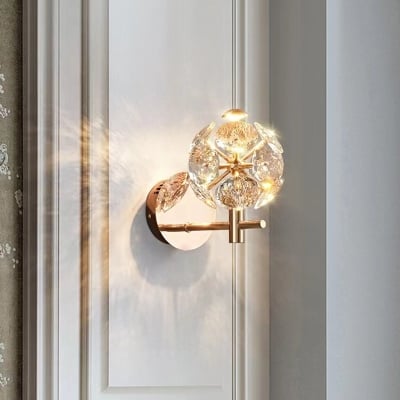 Zeitgenössische Luxus-Hardware-Kristallkugel-LED-Wandleuchte für Wohnzimmer