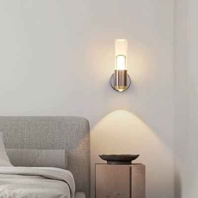 Zeitgenössische skandinavische zylindrische LED-Wandleuchte aus Eisen, Aluminium und Acryl mit optischer Linse für Schlafzimmer