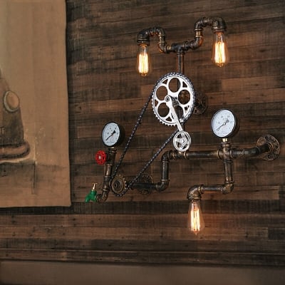 Zeitgenössische industrielle Eisen-Sanitär-Wandleuchte mit 3 Leuchten für das Wohnzimmer