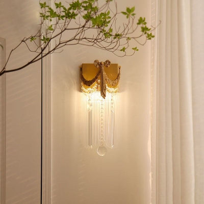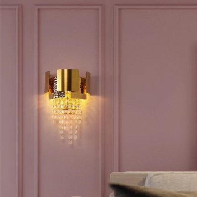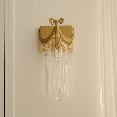 Moderne Art Deco Messing Kristall Quaste 1-flammige Wandleuchte für Wohnzimmer