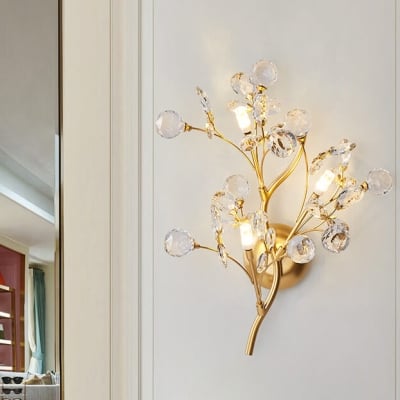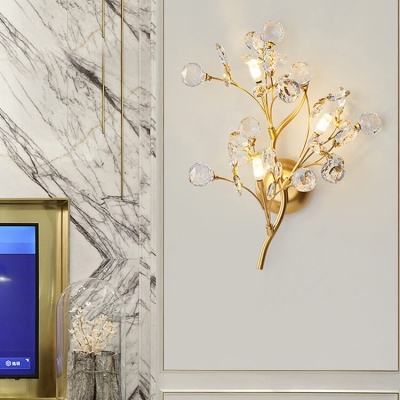 Zeitgenössische kreative Zweig Kugel Blatt Eisen Kristall 2/3 Licht Wandleuchte Lampe für Wohnzimmer