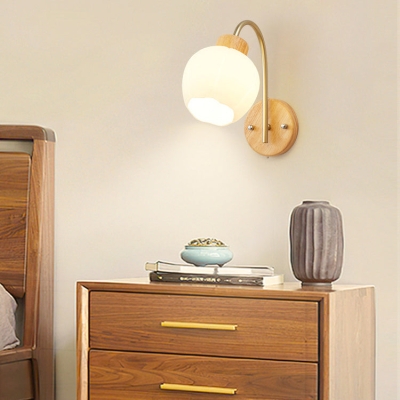 Zeitgenössische kreative Glocken-Orchideen-Blumen-Plissee-Glasschirm-Holz-Wandleuchte mit 1 Licht für Wohnzimmer