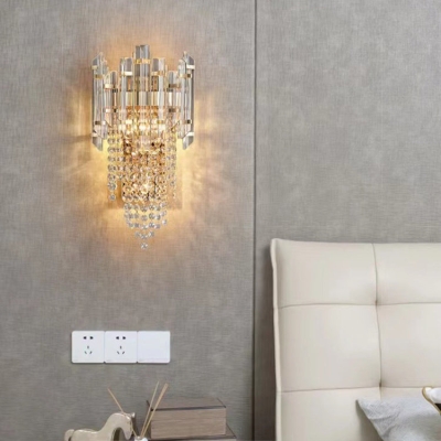 Moderne Luxus Gold Edelstahl Kristall Quaste 2-Licht Wandleuchte Lampe für Wohnzimmer