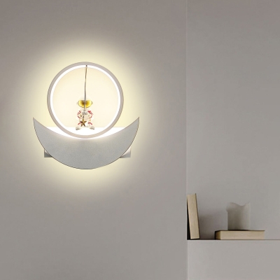 Zeitgenössische kreative Harz-Weltraum-Astronauten-runder Eisen-Aluminiumschirm-LED-Kind-Wandleuchter-Lampe für Schlafzimmer