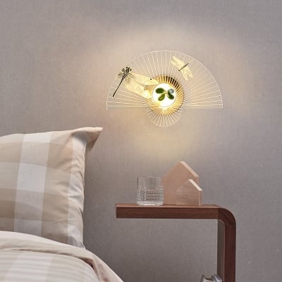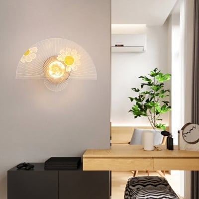 Zeitgenössische kreative fächerförmige Acryl-Sonnenblumen-Libellen-Dekor-LED-Wandleuchte für Wohnzimmer