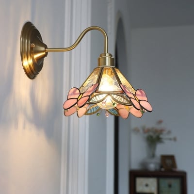 Traditionelle Tiffany-Buntglas-Blumenschirm-Meerjungfrau-Hardware-Lampenarm-Wandleuchte mit 1 Licht für Wohnzimmer