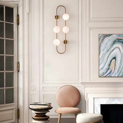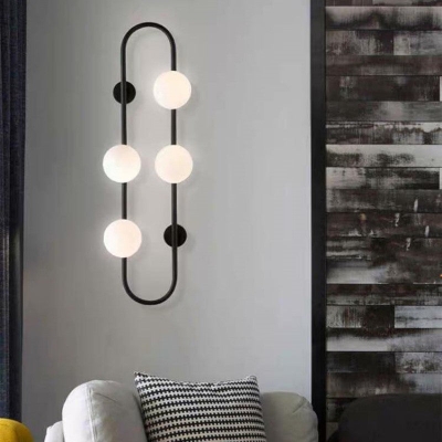 Zeitgenössische skandinavische ovale Kugel-Hardware-Glaswandleuchte mit 4 Leuchten für das Wohnzimmer