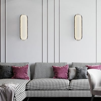 Moderne minimalistische Eisen-Karomuster-Acryl-Säulenschirm-LED-Wandleuchte für Wohnzimmer