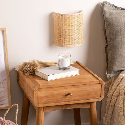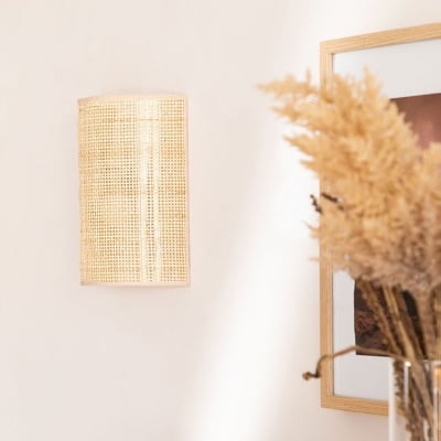 Traditionelle japanische halbzylindrische Rattan-Wandleuchte mit 1 Licht für das Wohnzimmer