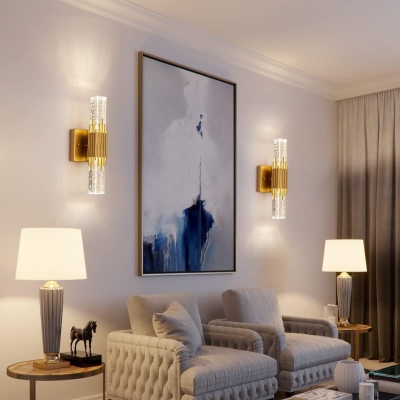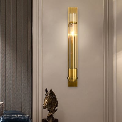 Moderne Luxus-Gold-Finish-Rahmen-Glaszylinder-LED-Wandleuchte für Wohnzimmer
