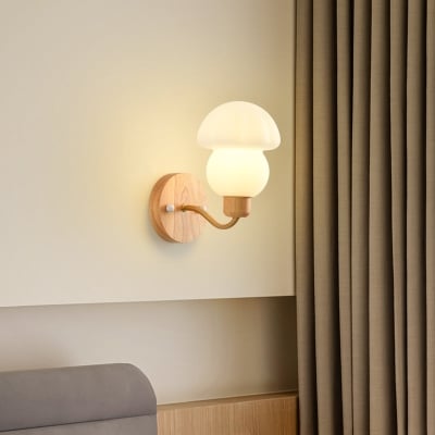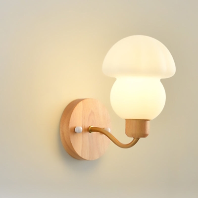 Zeitgenössische skandinavische PE-Pilzschirm-Holzrahmen-Wandleuchte mit 1 Licht für Schlafzimmer